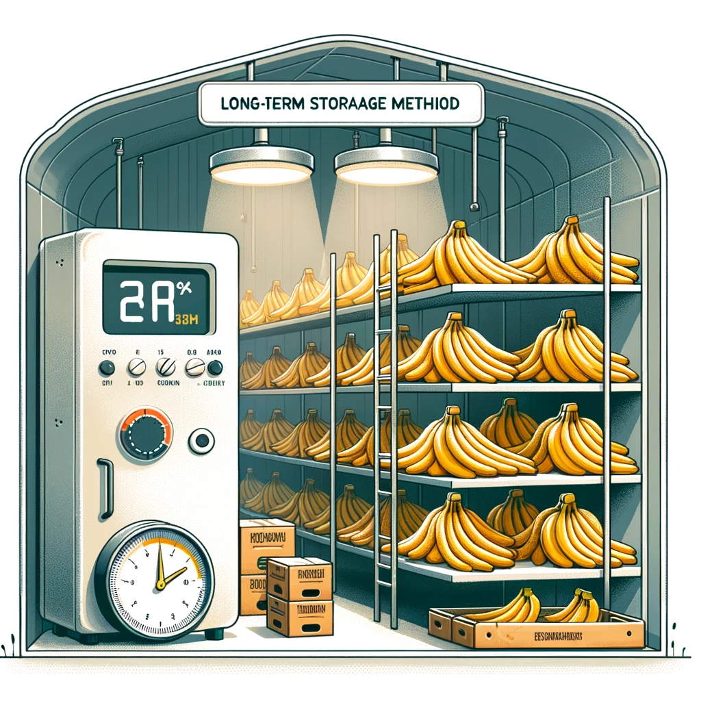 바나나는 상온에서도 오랜 기간 보관이 가능하지만, 상온에서 보관하다보면 빨리 상할 수 있습니다. 따라서 바나나를 장기보관하기 위해서는 온도와 습도에 유의해야 합니다. 선선한 곳에 보관하는 것이 좋으며, 온도는 13도에서 15도 정도가 적합합니다. 또한 바나나의 보관 상태를 유지할 수 있도록 습도를 85% 이상 유지하는 것이 좋습니다.